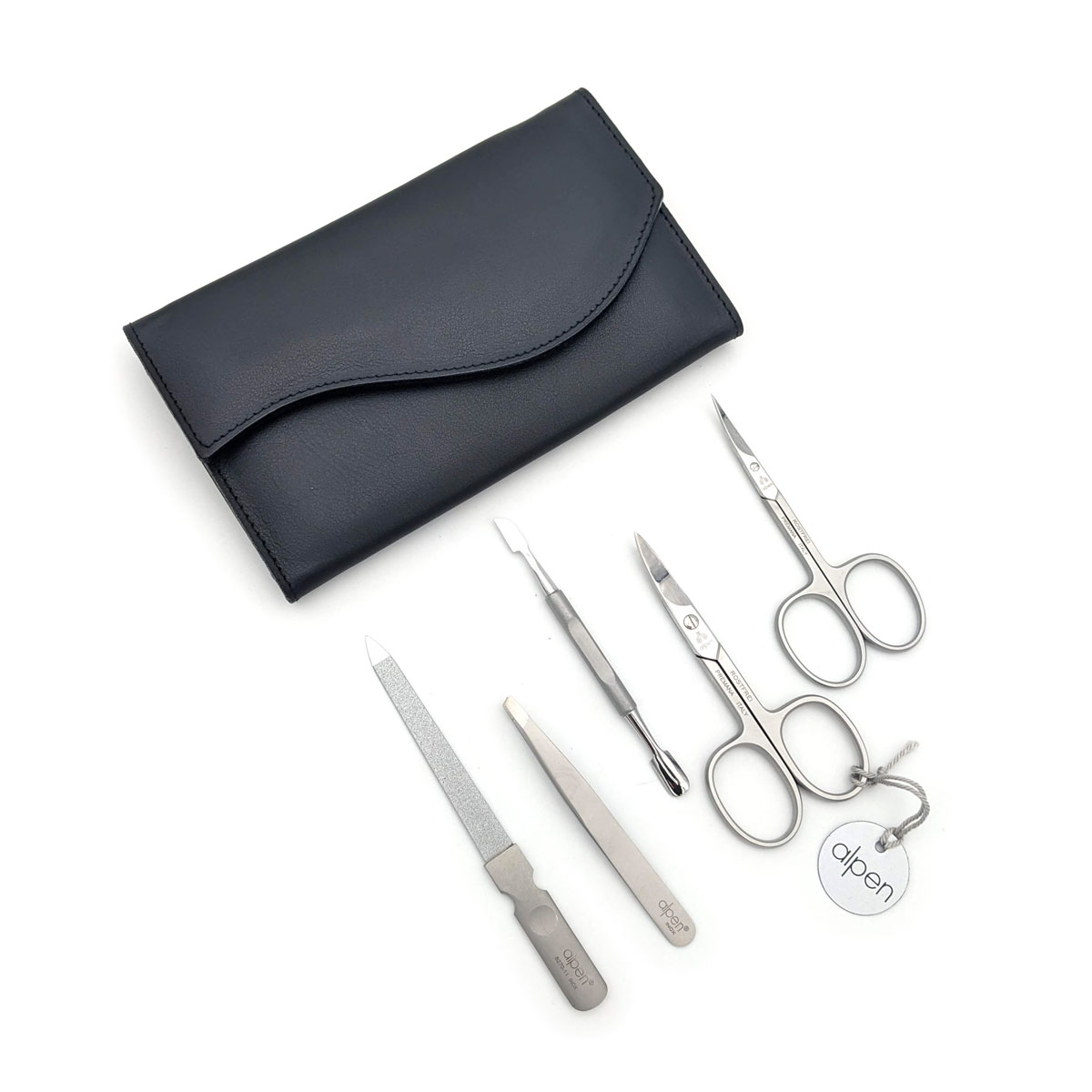 Alpen – Manikürset mit Druckknopf, 6-tlg., inox. (pol./matt), Nappaleder, Schwarz – 6836RP-BLACK