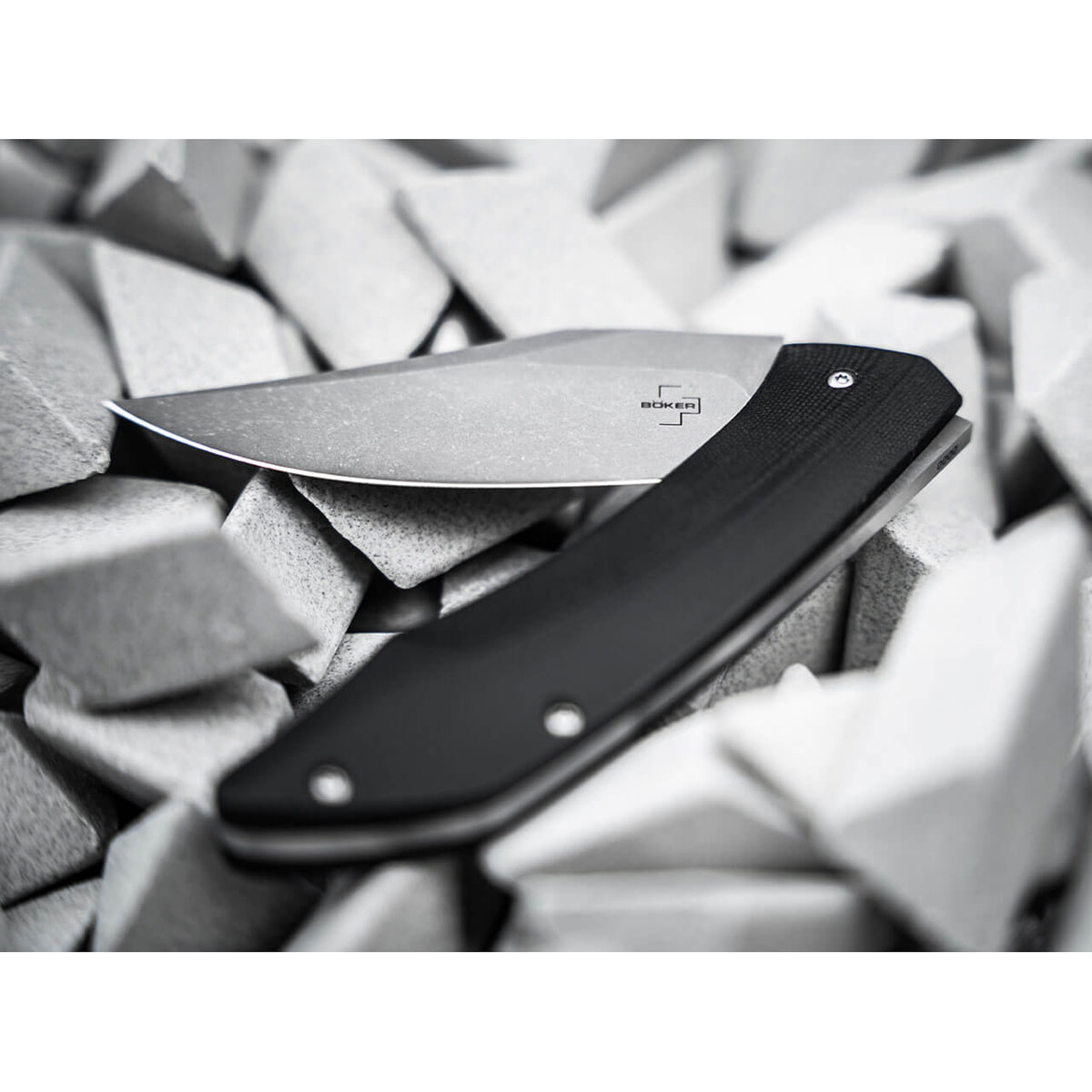 Ausgestattet mit den Genen des erfolgreichen Böker Plus Frelon präsentieren die französischen Messermacher Raphael Durand und Samuel Lurquin mit dem Böker Plus SamoSaur das nächste alltagstaugliche Taschenmesser. Die Besonderheit liegt in der Bauart des Slipjoint Mechanismus, die als Cran Forcé bezeichnet wird. Hierbei drückt eine verstärkte Rückenfeder permanent auf die Klingenwurzel und sorgt für einen satten Widerstand beim Öffnen und Schließen des Messers. Die Clippoint Klinge aus D2 meistert die täglichen Schneidarbeiten souverän und ist mit einer Fehlschärfe am Klingenrücken sowie einem kernigen Stonewash-Finish versehen. Die konturierten Griffschalen aus G10 liefern in jeder Lage sicheren Halt und runden das aufgeräumte Erscheinungsbild des Böker Plus SamoSauer formschön ab.