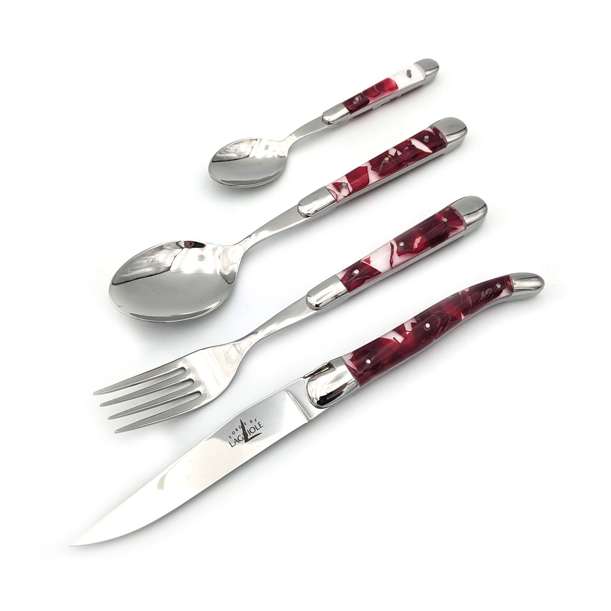 Forge De Laguiole – “Pétales de Roses” Besteck-Set, Rosenblätter in Acryl, 4-teilig (B)