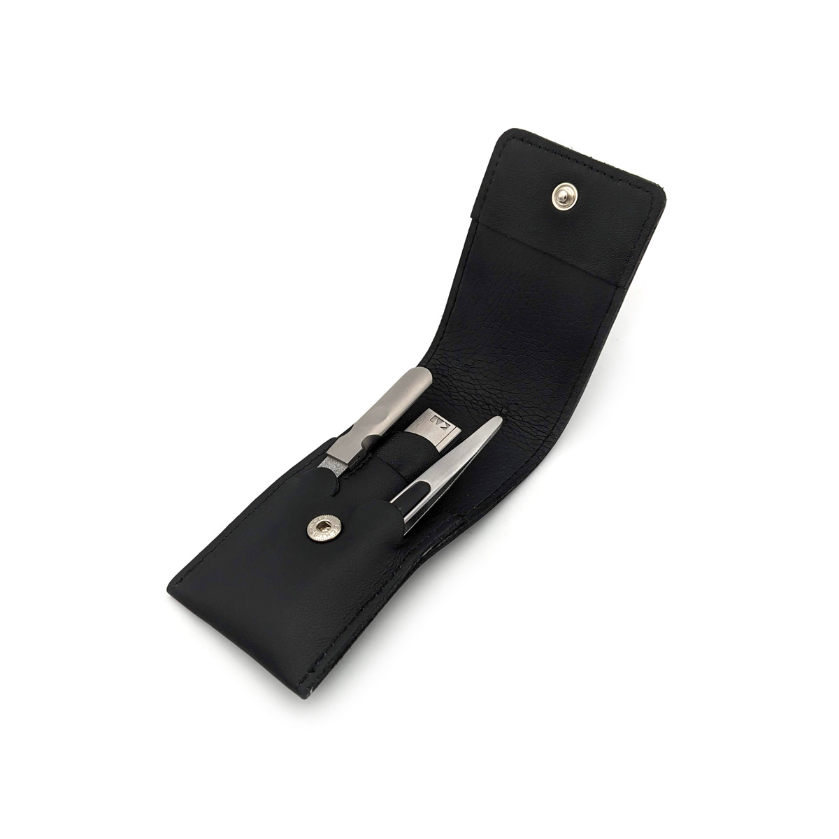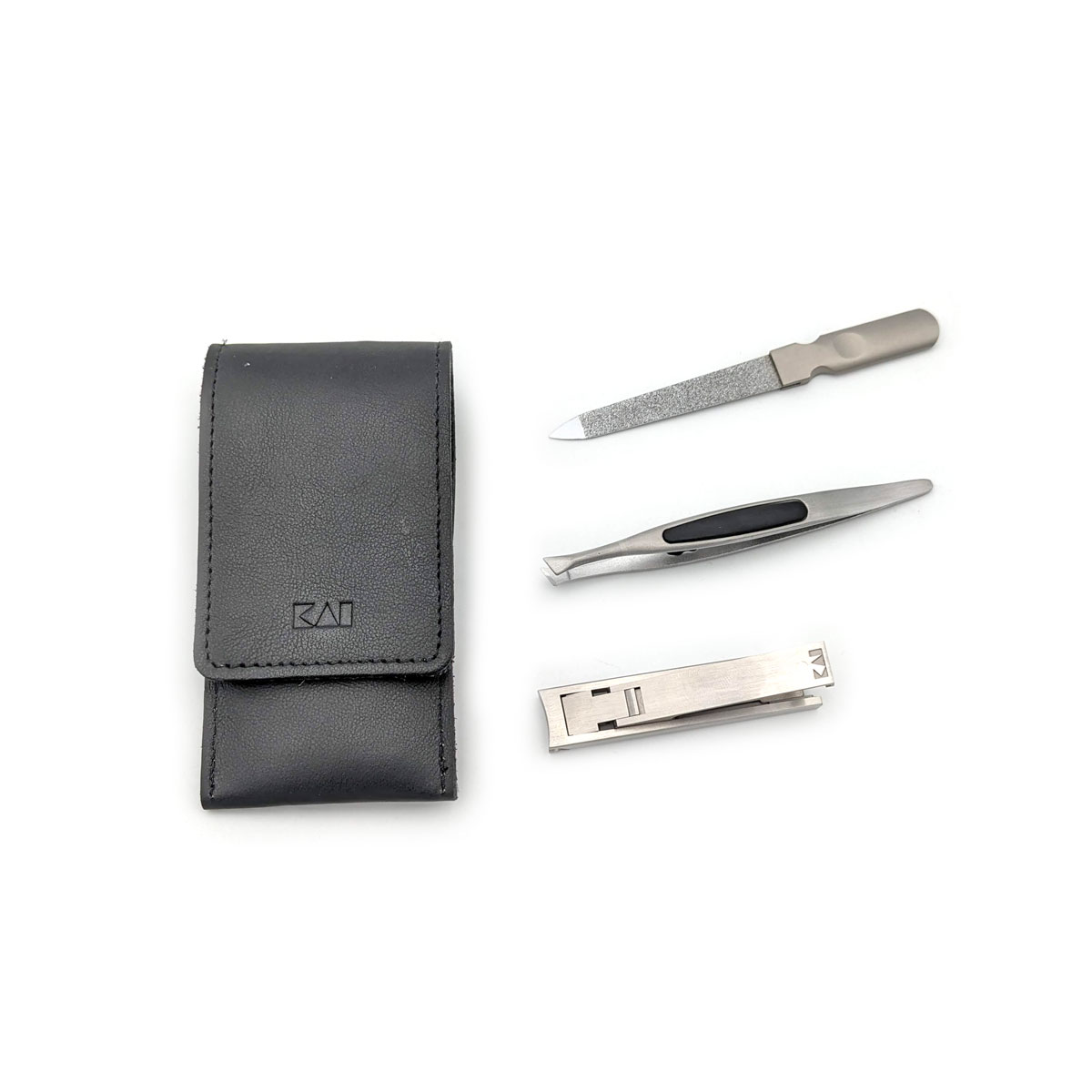 KAI – Manikürset mit Druckknopf, 4-tlg., rostfrei, Nappaleder, Schwarz