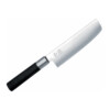Das KAI Wasabi Black Santoku kann für die Zubereitung von Fisch, Fleisch und Gemüse verwendet werden. Der Name “Santoku” bedeutet übersetzt “drei Tugenden”, was darauf hinweist, dass es vielseitig einsetzbar ist und gilt quasi als japanisches Pendant zum europäischen Kochmesser. Obwohl es optisch einem Hackmesser ähnelt, ist es nicht für das Hacken von Lebensmitteln geeignet. Stattdessen verfügt es über eine hohe, gedrungene Klinge, die beidseitig geschliffen ist und sich besonders für voluminöses Schnittgut wie Gemüse eignet. Die breite Klinge ermöglicht es außerdem, das geschnittene Gut mühelos in den Topf oder die Schüssel zu befördern.
