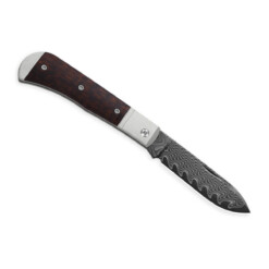 Entworfen von Azo, verfügt das Messer über stabile Backen aus Aluminium und Griffeinlagen aus Leopardenholz (Perlholz), die sicheren Halt und eine optisch ansprechende Gestaltung bieten. Der Slip-Joint-Mechanismus ermöglicht ein sanftes Öffnen und Schließen der Klinge ohne Verriegelung, ideal für alltägliche Aufgaben.