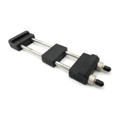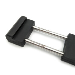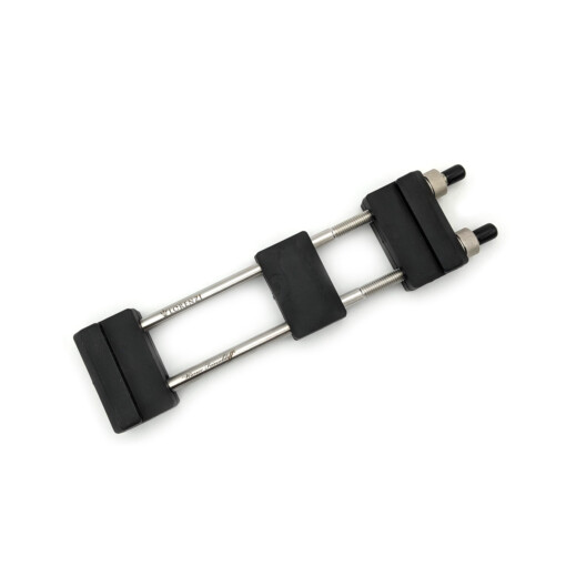 Der massive Grundkörper aus hochwertigem Gummi bringt 545 g Gewicht auf die Waage und sorgt somit für beeindruckende Standfestigkeit, selbst auf glatten Küchenoberflächen. Zwei Edelstahlspanngewinde halten Schleifsteine zwischen 145 und 220 mm Länge sicher eingespannt. Die gummiartige Auflagefläche dämpft Vibrationen, ist absolut rutschfest und bleibt auch bei Wasserzugabe zuverlässig stabil.