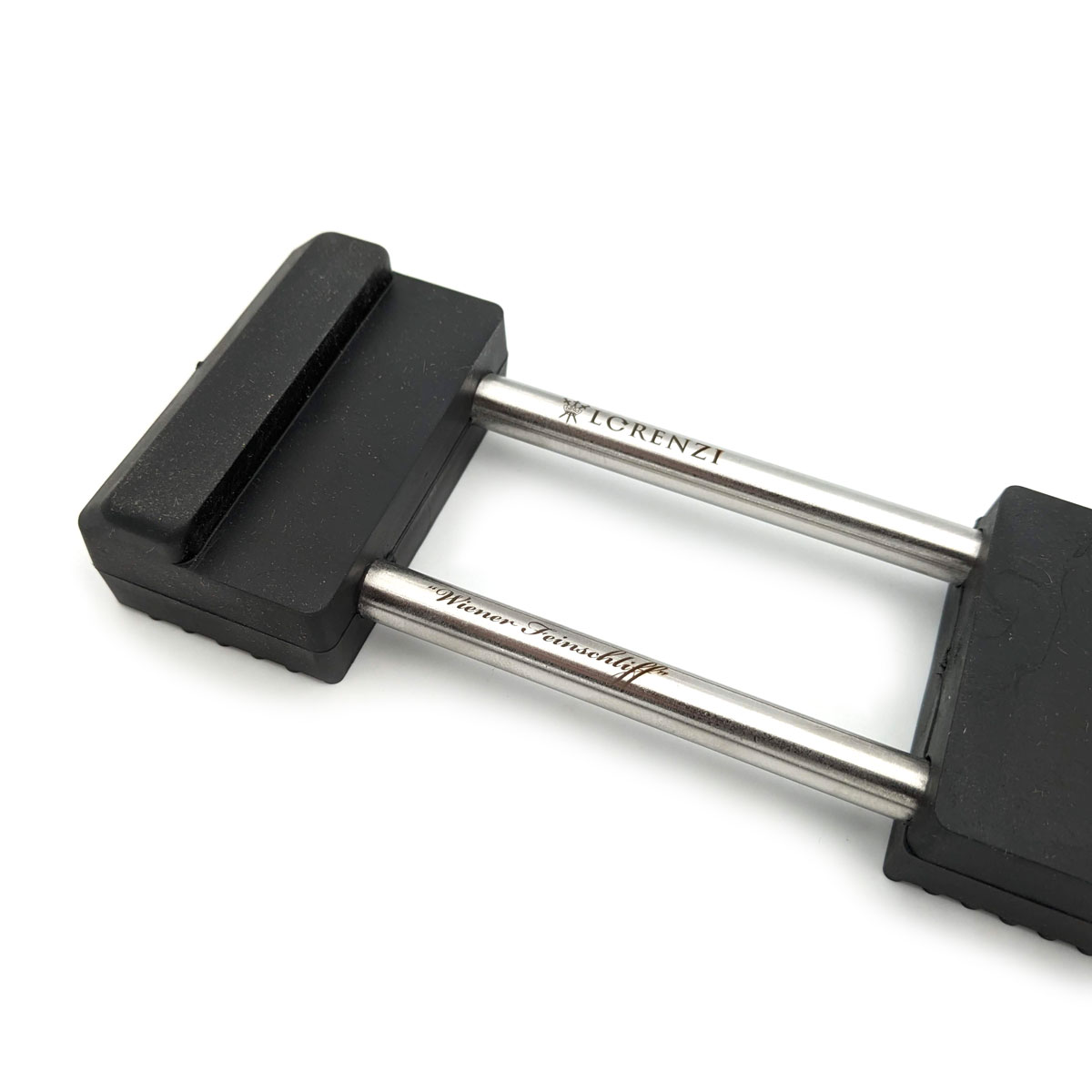 Als besonderes Detail haben wir die Halterung per Lasergravur mit unserem Markensignet “LORENZI – Wiener Feinschliff” veredelt – eine Reminiszenz an unsere 190-jährige Tradition im Metallhandwerk. Diese Edition wird auch in unseren beliebten Schärfkursen eingesetzt, in denen die Teilnehmerinnen und Teilnehmer die Grundlagen des Handschliffs und den richtigen Umgang mit Schleifsteinen direkt an hochwertigen Arbeitsmaterialien erlernen.