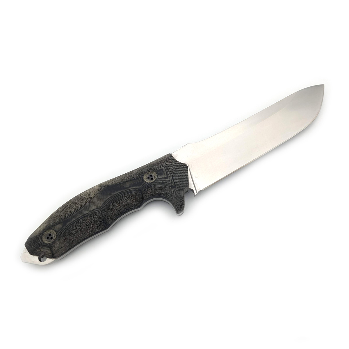 Trotz seiner robusten Bauweise ist das Messerkönig Darkstalker äußerst schneidfreudig und vielseitig im Outdoor-Einsatz. Der ergonomische Micarta-Griff liegt sicher in der Hand, während die Klinge aus N690-Stahl für hohe Stabilität und Zuverlässigkeit sorgt.