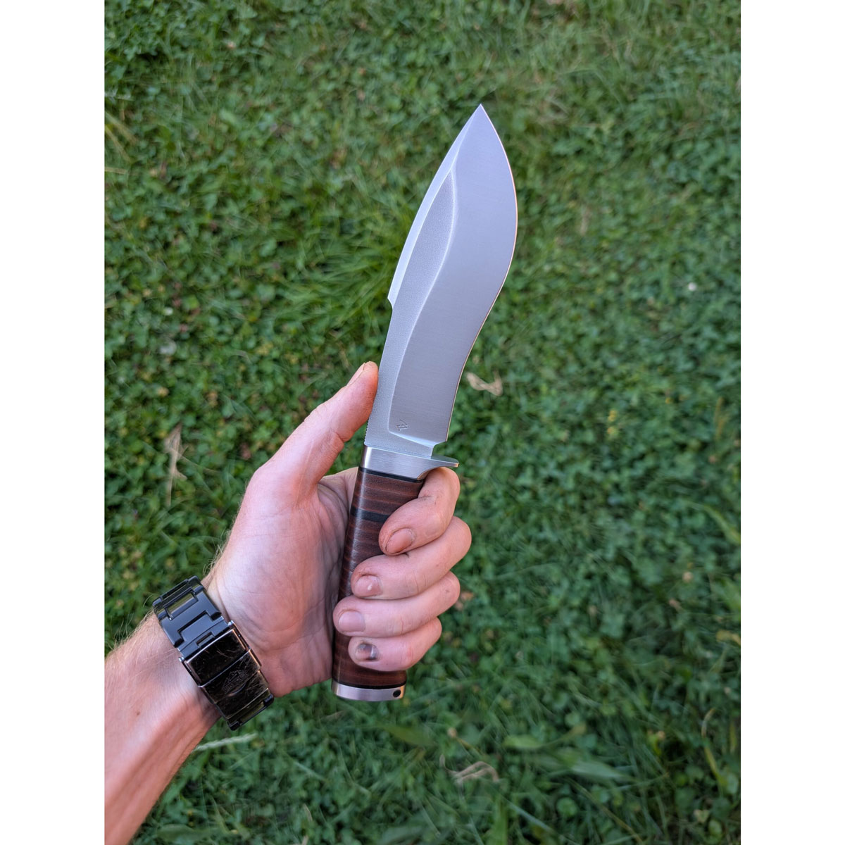 Fällkniven – HK9cxLmm Damast-Jagdmesser, Lederhülle, Holzbox