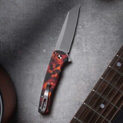Pro-Tech – Malibu Flipper, “Del Fuego” Custom Handle, Magnacut Reverse Tanto Blade, Stonewash Finish – 5401-DF