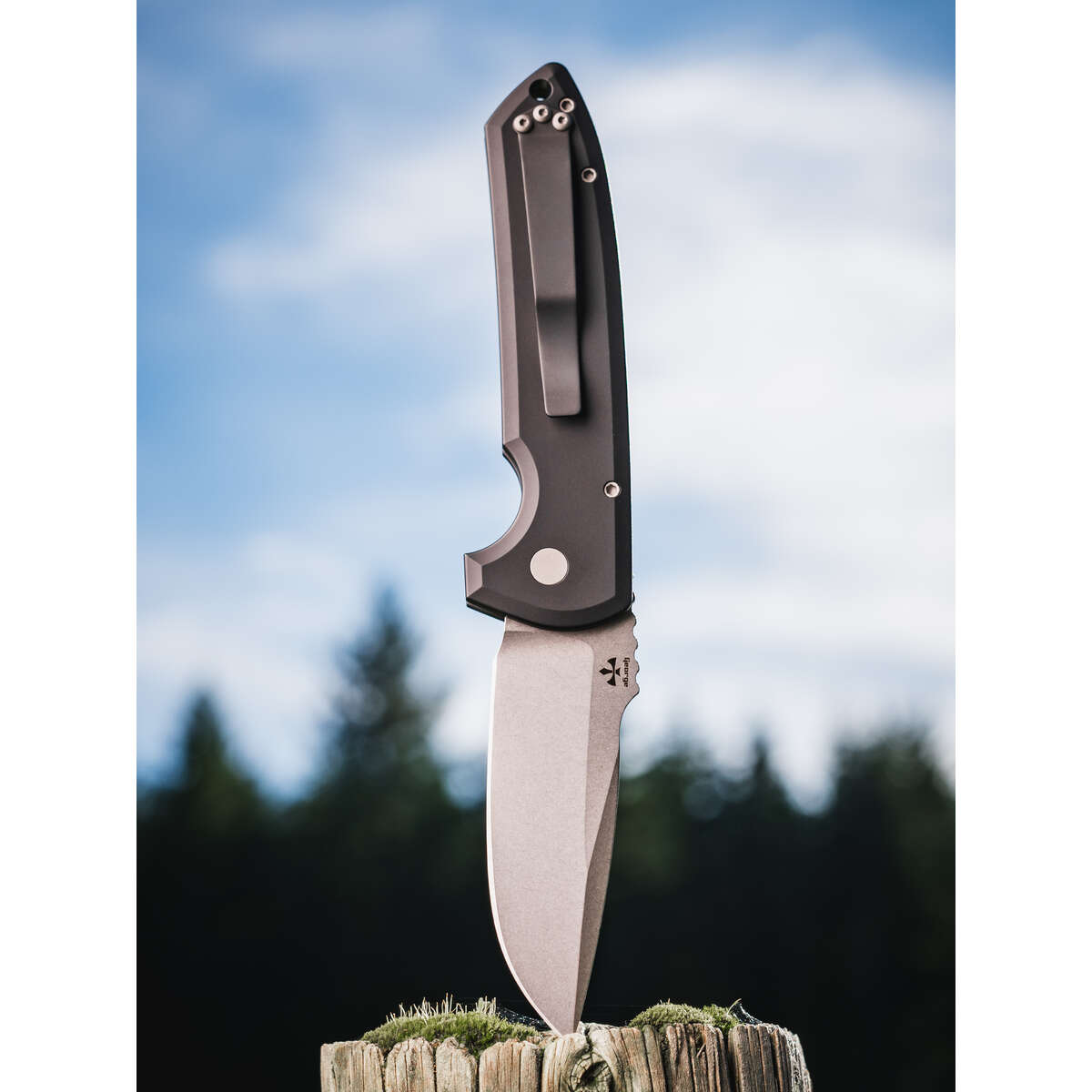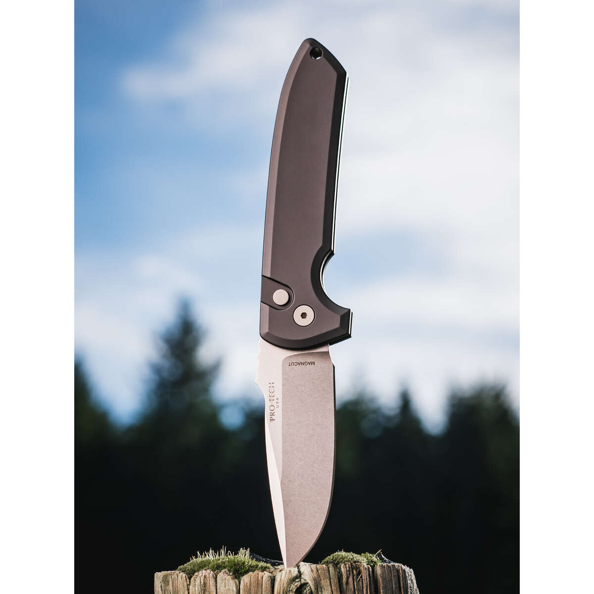 Pro-Tech – Rockeye Auto, Stonewash Magnacut Blade, Plain Edge, Black – LG3101