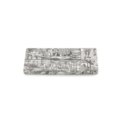 Der vergoldete Griff ist filigran verziert und verleiht der Schere eine besondere, dekorative Anmutung. Ergänzt wird sie durch eine passend gestaltete Schutzhülle im gleichen Design.
